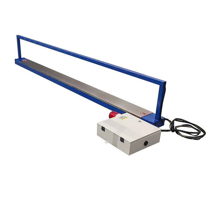 用于宽幅的布匹、无纺布、喷胶棉、针刺棉、纸板、木板、裁片等物品的断针、刀片、金属碎片、铁磁性金属等金属杂质检测-过检针机。