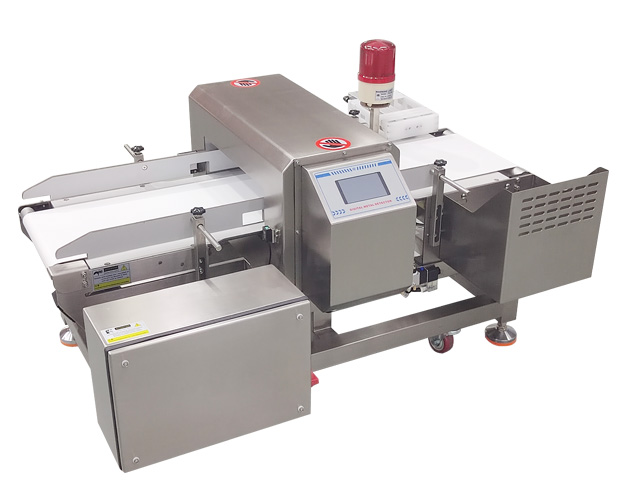 一款小型金属检测机,专为对接包装机检测小包装产品,小滚筒设计,不会卡料。推杆剔除金检机,其核心功能是通过推杆剔除装置将含有金属杂质的产品从输送带上分离,确保产品质量安全,适合配套生产线作业。